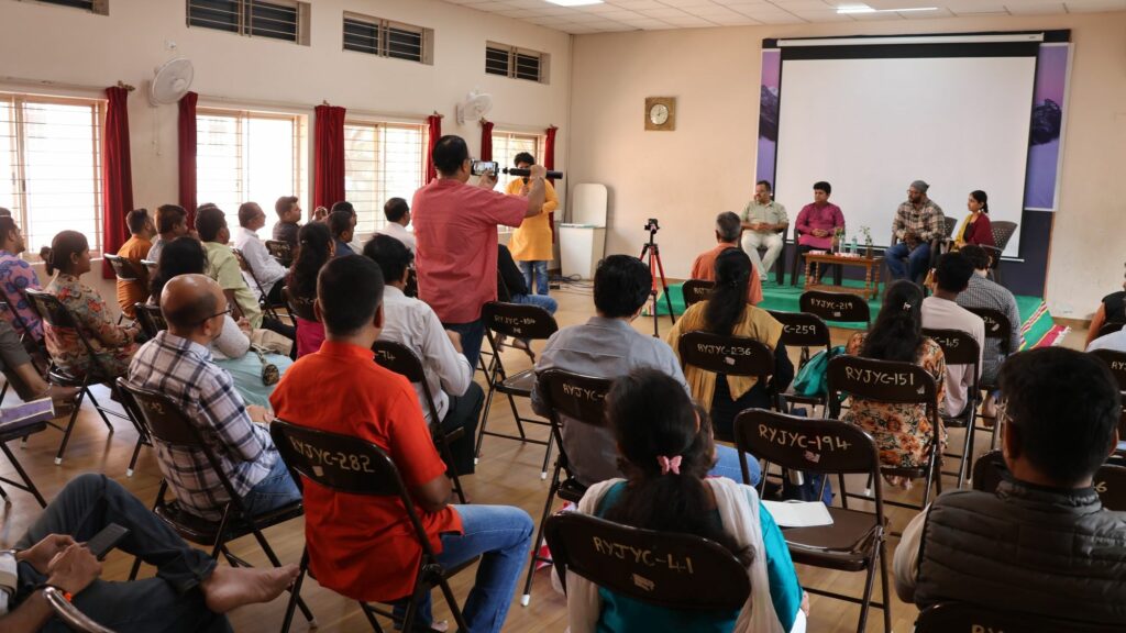ಮಂಥನ ಬೆಂಗಳೂರು ಹಾಗೂ ರಸಗ್ರಹಣದ ಸಹಯೋಗದಲ್ಲಿ ಜಯನಗರದ ರಾಷ್ಟ್ರೋತ್ಥಾನ ಫಿಟ್ನೆಸ್ ಸೆಂಟರ್ ನಲ್ಲಿ ಆಯೋಜಿಸಲಾದ “ಸಿನೆಮಾ ಮತ್ತು ಸಮಾಜ” ಎಂಬ ವಿಷಯದ ಕುರಿತು ಸಂವಾದ ಕಾರ್ಯಕ್ರಮದಲ್ಲಿ ಭಾನುವಾರ ಮಾತನಾಡಿದರು.