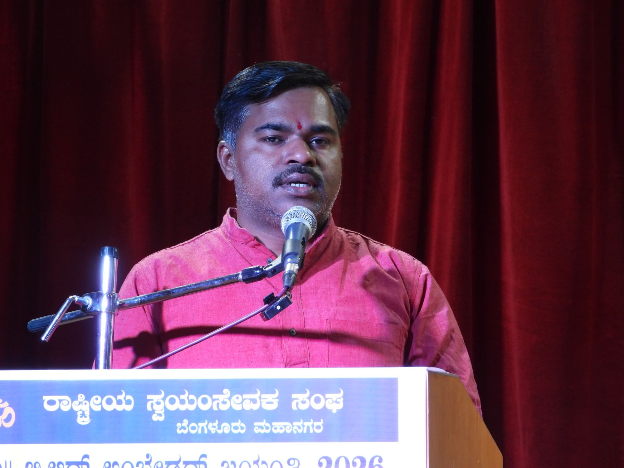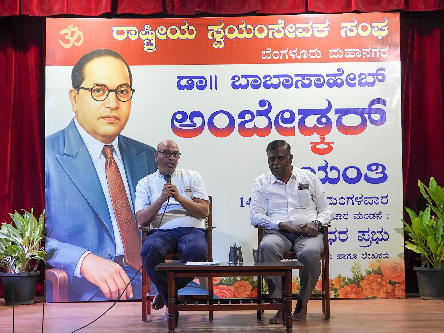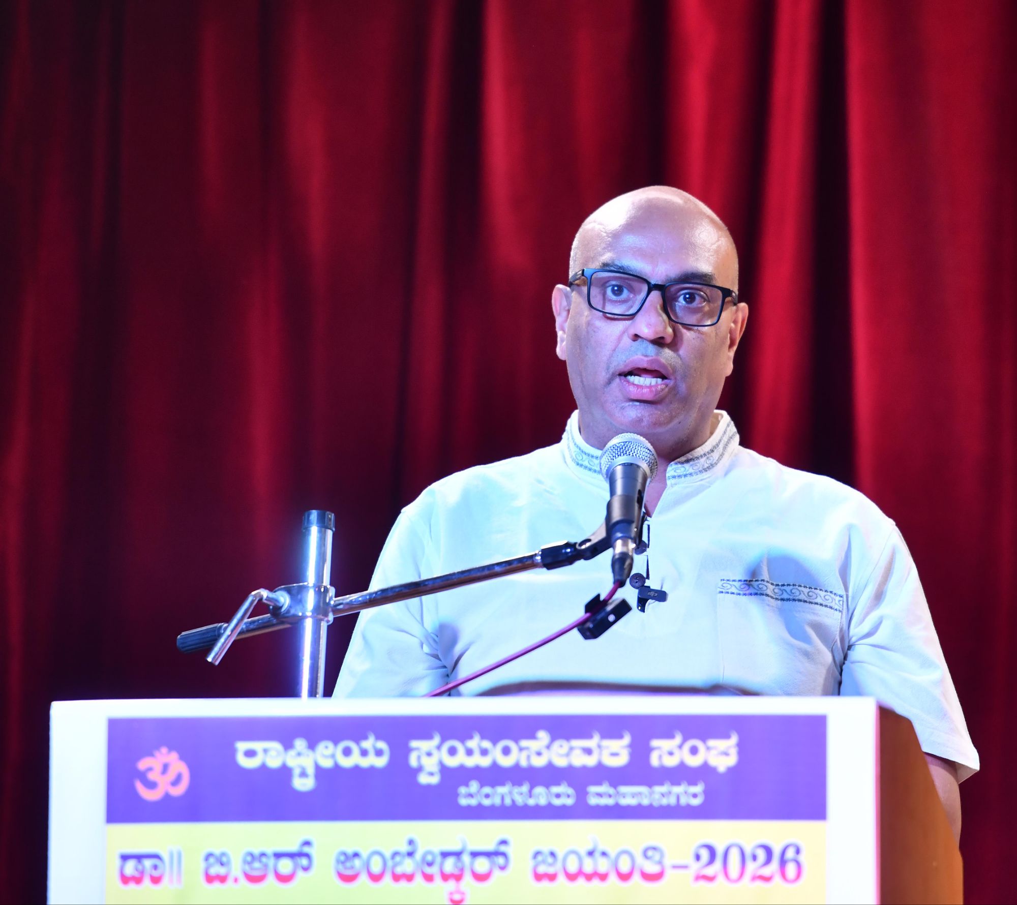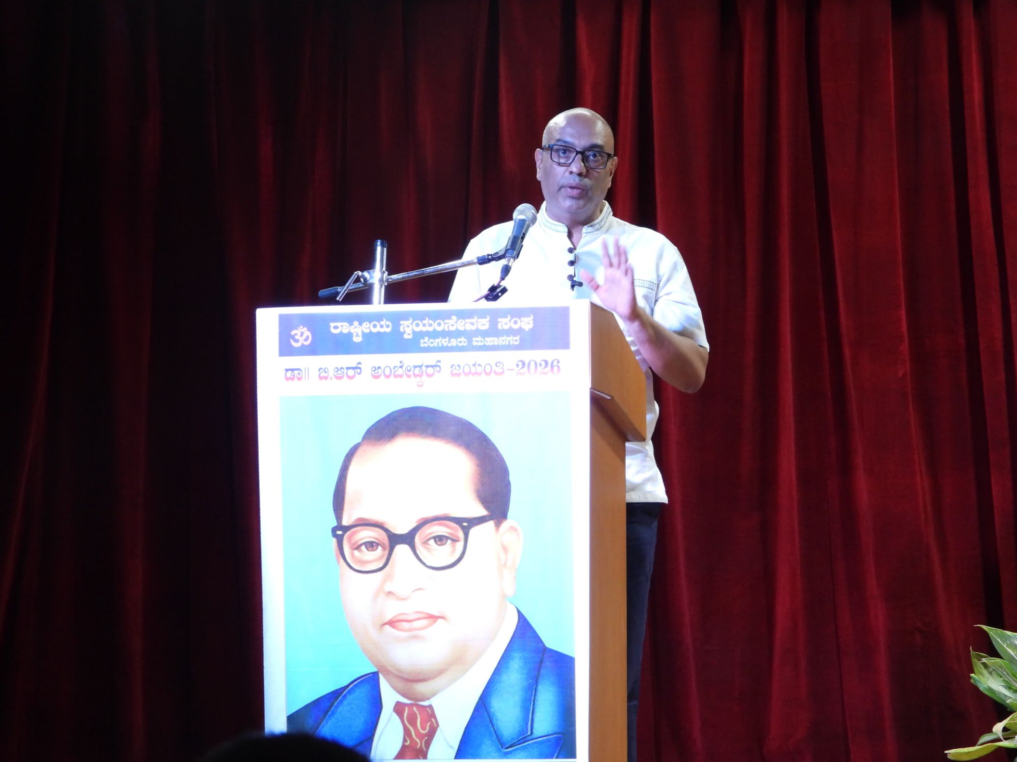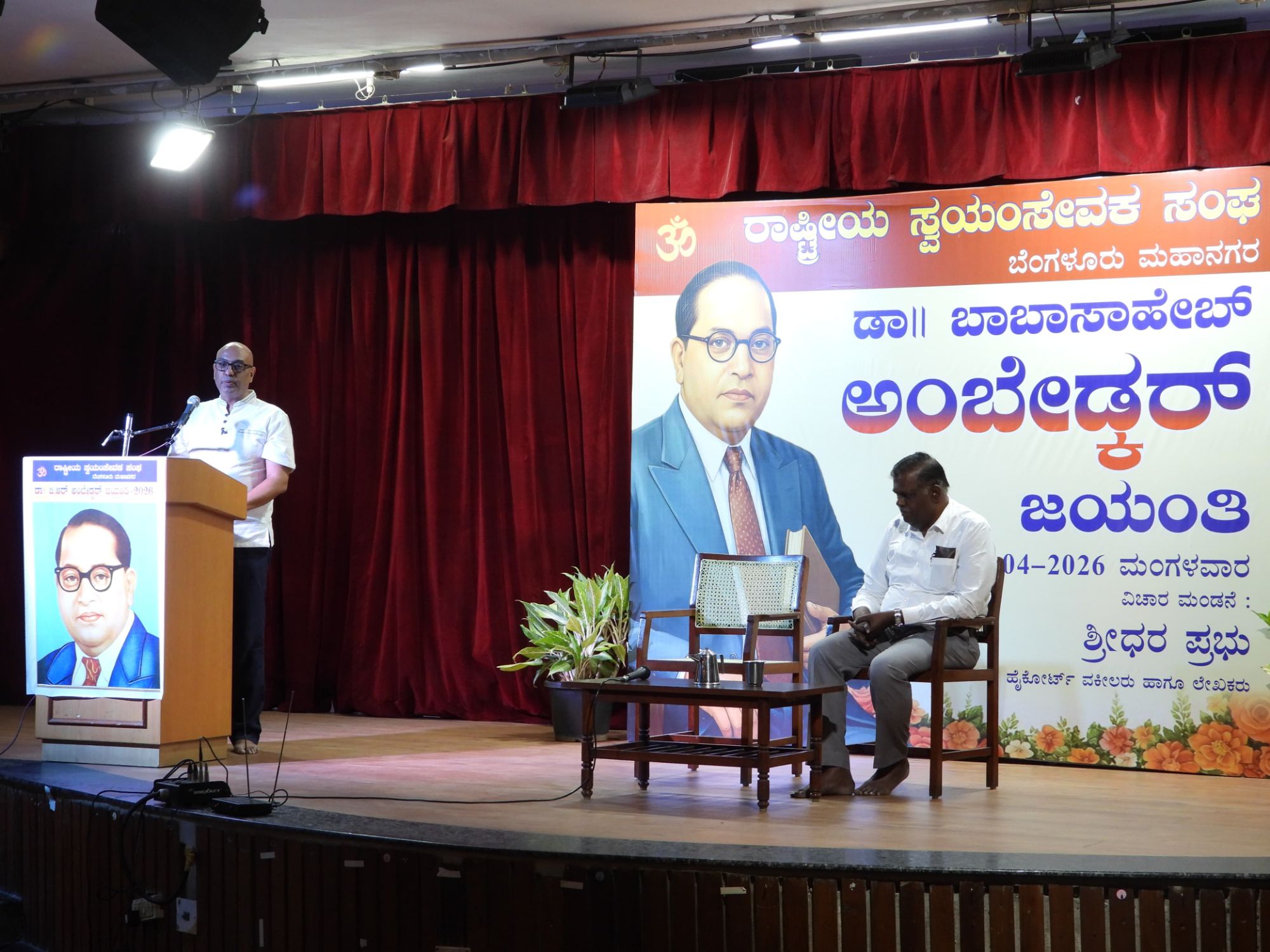 ರಾಷ್ಟ್ರೀಯ ಸ್ವಯಂಸೇವಕ ಸಂಘ ಬೆಂಗಳೂರು ಮಹಾನಗರ ವತಿಯಿಂದ ರಾಜಾಜಿನಗರದ 6ನೇ ಬ್ಲಾಕ್ ನ ಎಸ್ ಜೆ ಆರ್ ಪಬ್ಲಿಕ್ ಶಾಲೆಯಲ್ಲಿ ಆಯೋಜಿಸಲಾದ ‘ಡಾ|| ಬಾಬಾ ಸಾಹೇಬ್ ಅಂಬೇಡ್ಕರ್ ಜಯಂತಿ’ ಕಾರ್ಯಕ್ರಮದಲ್ಲಿ ಮಾತನಾಡಿದರು.