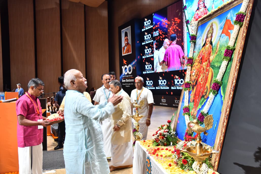 On Hinduism and Hindutva, Mohan Bhagwat said, “We must decolonise our minds. ‘Ism’ means ‘vad’ and is exclusive; ‘tva’ means ‘ness’ and is inclusive.” He emphasised that Hindutva is inclusive and that the Sangh aims to unite all Hindus under one umbrella. “Act on truth, be compassionate, keep your heart and mind pure, and whatever you do, do it for the nation,” he said.