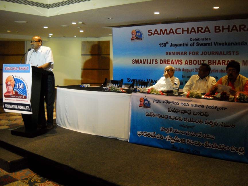 Hyderabad Aug 24: Samachar Bharati conducted a seminar on “Swamiji ‘s Dreams of Bharat-Role of Media “ on 24th Aug 2013 at the Marriott Hotel ,Hyderabad on the eve of the 150th Birth anniversary of Swami Vivekananda.
