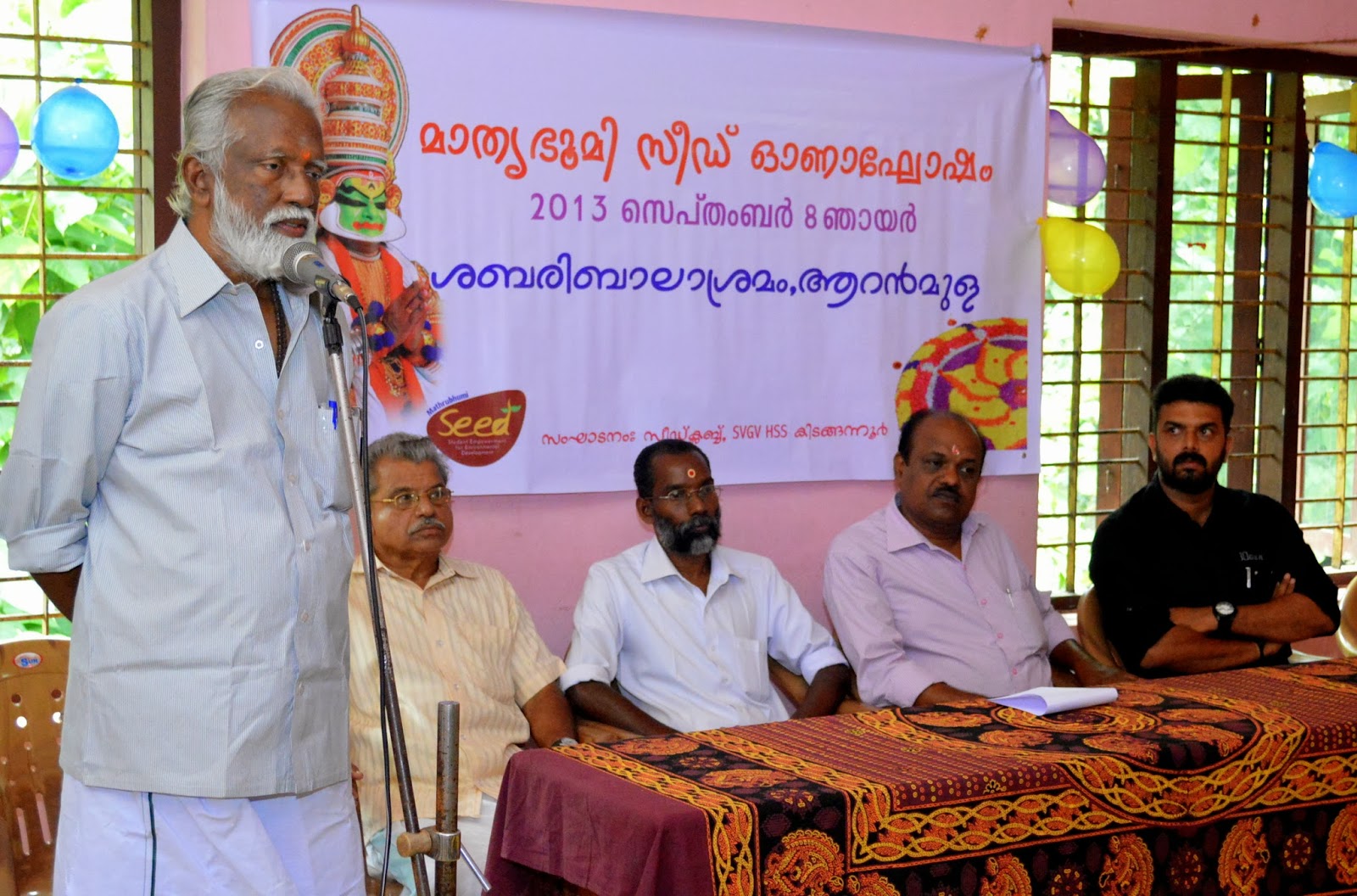 The Children at Balashramam had 40 guests to share the rejoicing spirit of the festival of unity. Mathrubhumi Seed Club Members with seed coordinators made their third visit on 11th September. The get-together of 80 children from various strata of the society passed a message of equality, harmony and integrity.