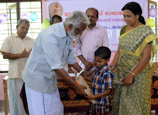 Children kept attentive throughout the function. Shri. Kummanam passed them a message, One who serves his life for the society enjoys Onam all the time. What the tender minds have to keep in mind is- immerse ourselves in attempts to raise others’ stance. Real celebration is – casting a helping hand to the needy.. Shri. Jyothish had a lot to tell them- Life should be a Message, some succeed in making it positive and the rest remember them as great ..