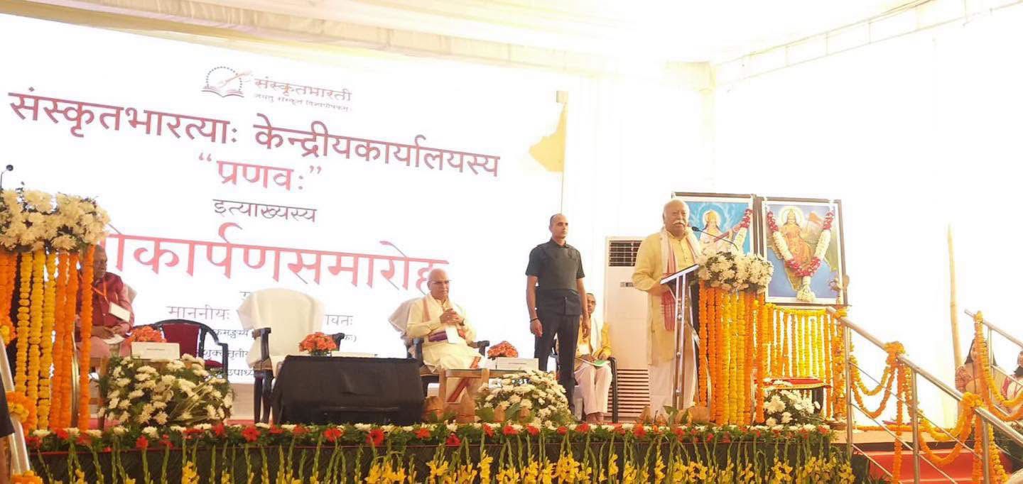 संस्कृत भारती के केंद्रीय कार्यालय के नवनिर्मित भवन ‘प्रणवः’ के लोकार्पण अवसर पर राष्ट्रीय स्वयंसेवक संघ के सरसंघचालक डॉ. मोहन भागवत जी ने कहा कि अक्षय तृतीया जैसे शुभ मुहूर्त पर ‘प्रणवः’ कार्यालय का लोकार्पण अत्यंत आनंददायक और शुभ संकेत है। यह सत्य संकल्प है। ‘प्रणवः’ सृष्टि के मूल नाद का प्रतीक है और इस नाम के साथ आरंभ हुआ यह कार्य पूर्णता की ओर अग्रसर होगा। उन्होंने संस्कृत को भारत का प्राण बताते हुए कहा कि यह केवल भाषा नहीं, अपितु भारत की संस्कृति, परंपरा और जीवन-दृष्टि की आधारशिला है। भारत को समझने के लिए संस्कृत को समझना अनिवार्य है, क्योंकि इसी में हमारी ज्ञान-परंपरा, दर्शन और जीवन-मूल्य निहित हैं। संस्कृत केवल एक भाषा नहीं, अपितु भारत का प्राण है। यह हमारे विचारों, संस्कृति और ज्ञान का वह सार है, जिसे पूरी दुनिज्याञान को देने की आवश्यकता है।