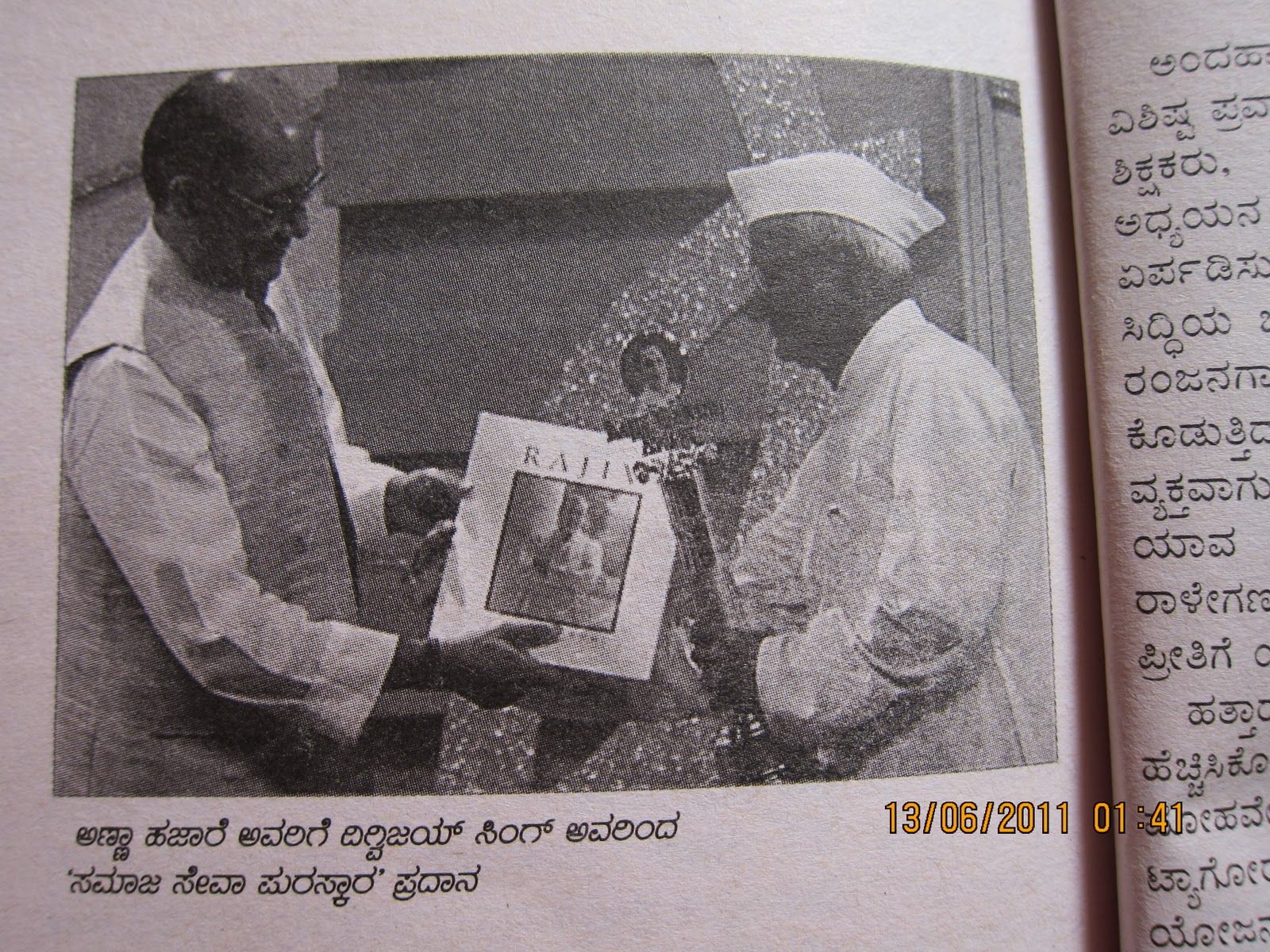 Anna getting Rajiv “Samaj Seva” award from Digvijay |